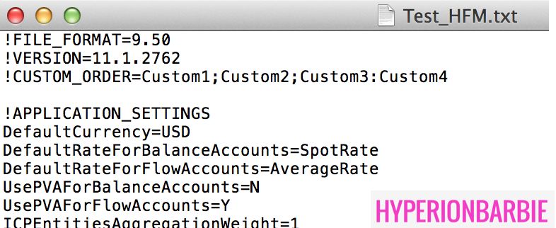 In version 11.1.2.2, the CUSTOM_ORDER property needs to be included in the header of the file. This property tells HFM which order the dimensions should be displayed – such as in a POV.
