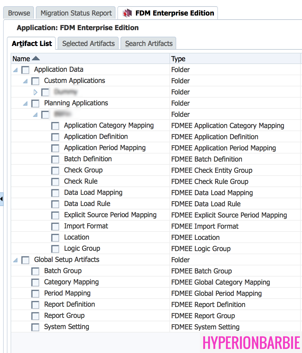 Under Application Management > Applications > FDM Enterprise Edition, you’ll notice they do not appear in the Artifact List: