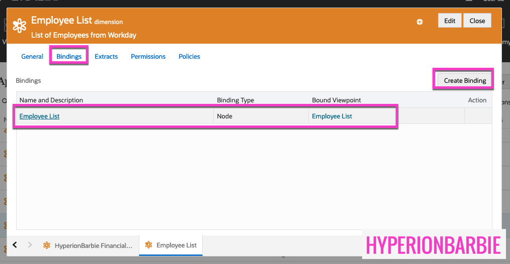 Now that the bindings are in place, my data chain is complete and I am able to navigate back to my HyperionBarbie Financials Application View and see a new Viewpoint for Employees has been created. I am able to populate my Employee List via a Request. (Note: I can create the items in my request manually or loading a request file). I’d imagine most companies would load this data in periodically from a Human Capital Management solution, like Workday, to keep the list up to date. Fortunately, Hyperion Barbie HQ has a relatively low headcount at the moment: