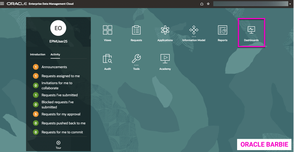 The EDM Change Management Dashboard unlocked a new “card” or “tile” in the EDM interface called “Dashboards” visible to Data Managers and above (Metadata Manager, Owner, System Administrator):